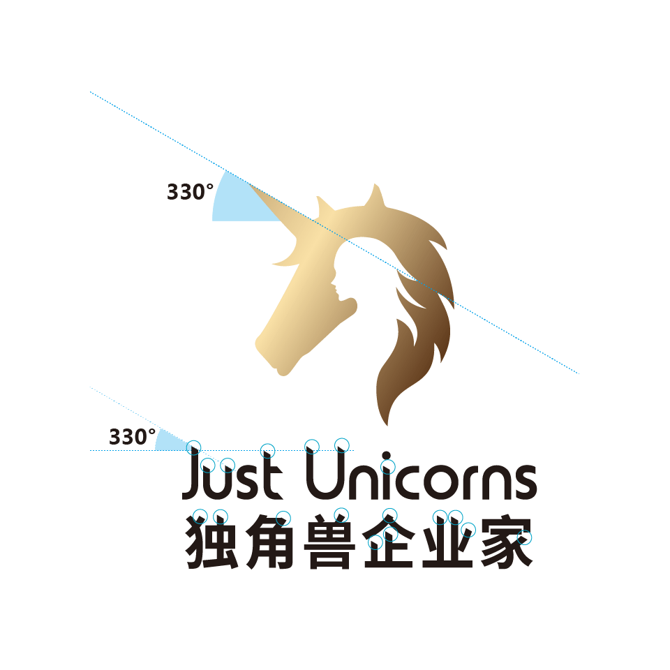 330 degrees represents hope, which symbolizes abandoning the old model and moving towards the new model. The unicorn’s horn is 330 degrees toward the upper left corner. Similarly, the bevel angle of the text is 330 degrees.